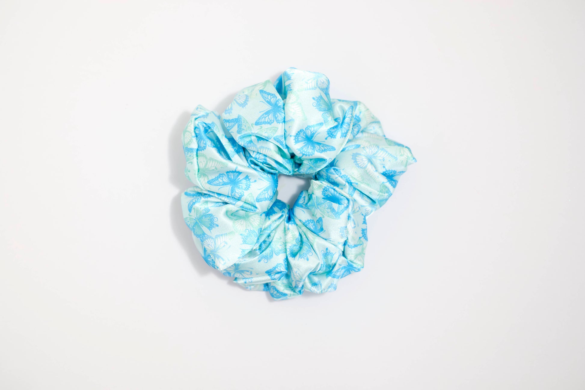Add a touch of delicate beauty to your hairstyle with this light blue floral print scrunchie. Featuring a subtle and charming flower pattern, this hair tie is perfect for creating stylish ponytails, buns, and other updos. The soft blue hue and elegant floral design make it a trendy and feminine accessory for women.
